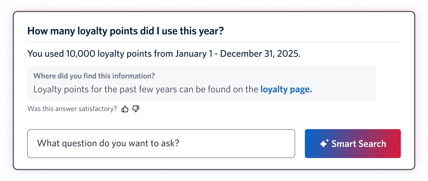 The new design improves scannability and context with a dedicated results view, guided by progressive disclosure principles. Visual hierarchy and distinct AI branding create recognition and excitement, while transparent messaging builds trust and sets expectations for better engagement.