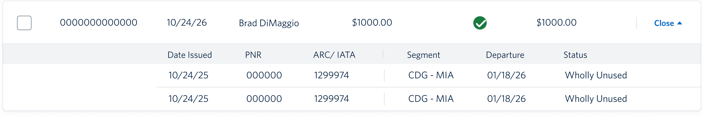 ✅ Clear information grouping Separates identifiers from travel details for easy scanning.