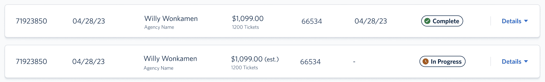 ✅ Nested transaction history Pills and grouping make complex data easy to interpret.